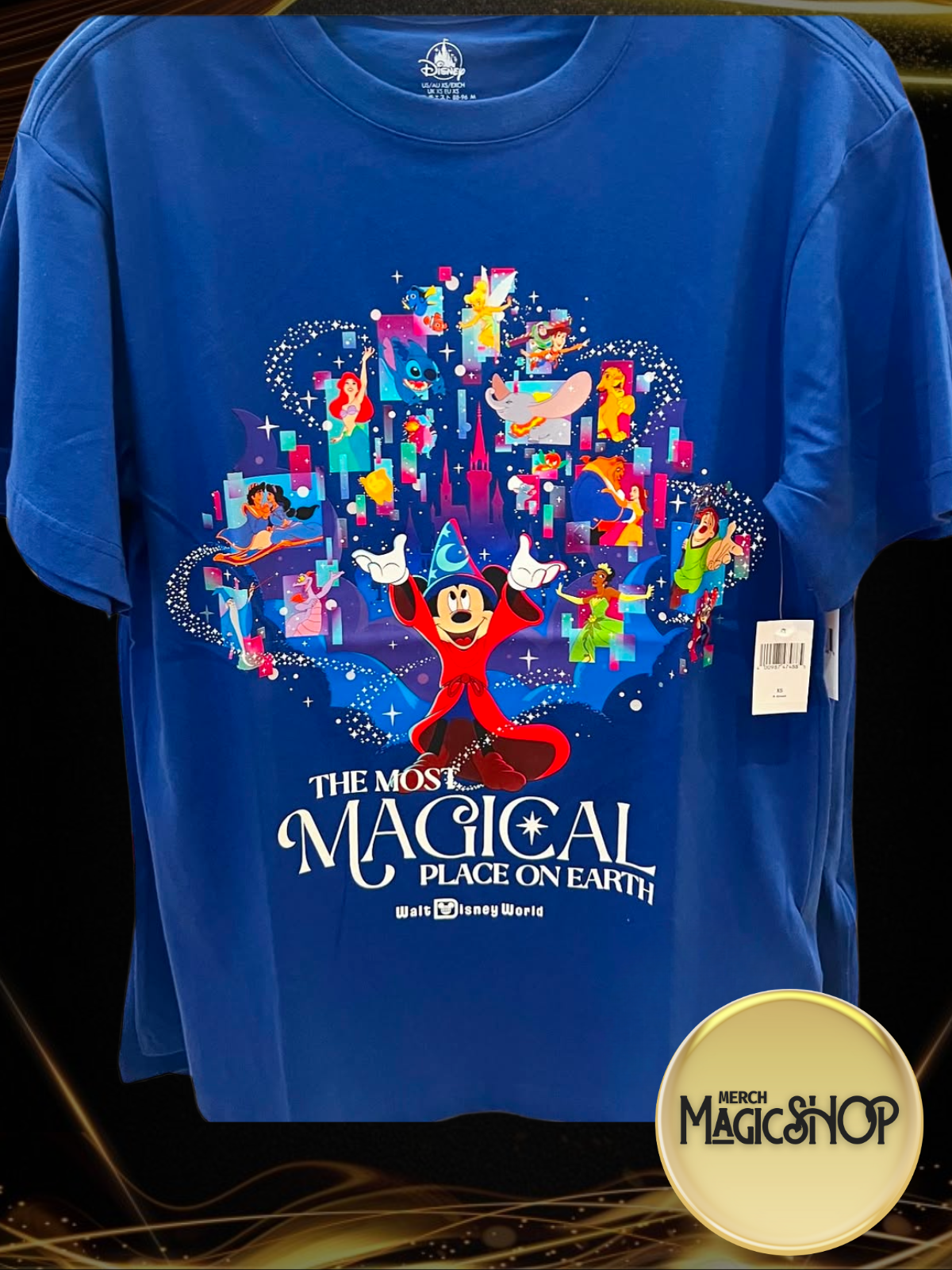 2025 Disney Parks WDW Shirt Sorcerer Mickey The Most Magical Place Blue